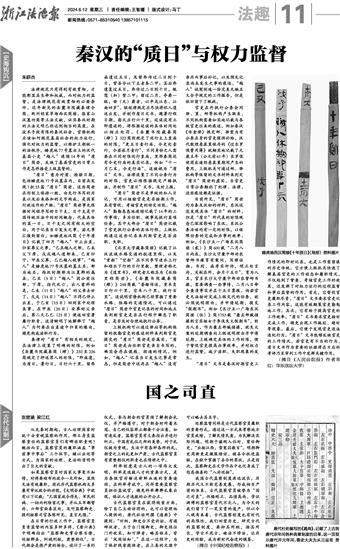 法律规范只有得到有效贯彻,才能彰显其生命和权威,而对权力的监督,是法律规范有效贯彻的必要条件。近年新见的岳麓书院藏秦律令简、荆州胡家草场西汉简牍、张家山汉墓竹简等立法文献,证实秦汉时期的立法文明已经达到相当的高度。在技术手段有限的秦汉社会,官僚机构应该如何规范基层社会的权力运行,强化对权力的监督,以维护王朝统一的法秩序,睡虎地77号墓出土的汉代基层小吏“越人”连续14年的“质日”简册,反映了基层官吏的日常工作是怎样接受上级监督的。