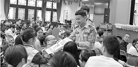 近日,温州市公安局龙湾区分局沙城派出所民警借着辖区学校文艺汇演的机会,不仅走上舞台演出反诈节目,还现场给台下的师生和家长发放反诈传单。