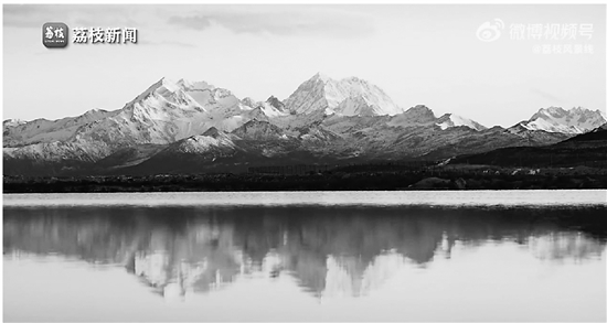 近日,四川甘孜,雅拉雪山出现壮观的日照金山景象。金色的雪山倒映在清澈的斯丁措湖中,水天一色,流云飞舞,美若遗世秘境。