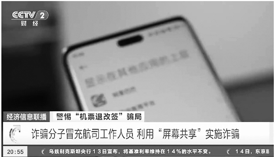 进入雷雨季,航班取消、延误的现象增多,这为诈骗分子提供了可乘之机。近期,有多位消费者反映,预订机票后,接到“因飞机故障航班取消,需旅客退改签机票”的短信或电话,诈骗分子冒充航司工作人员引导乘客下载具有“屏幕共享”功能的App实施诈骗。反诈专家提醒:航班改签请认准官方渠道,拒绝与陌生人共享屏幕。