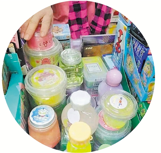 这种情况并非线下商店独有。在电商平台,记者搜索起泡胶,大部分带有“儿童”标签的产品,月销量均超过1000件,有的甚至还有听起来像是诱人甜品的名字——冰奶油、牛乳奶酪球等。在这些诱人名字和逼真外形的背后,却存在着十分严重的安全隐患。