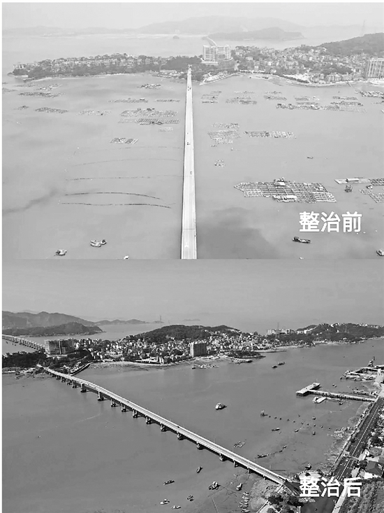| 三盘大桥海域整治前后对比 |