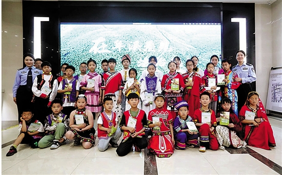 “接过禁毒的接力棒,我是禁毒小天使!”近日,在德清县阜溪街道禁毒普法馆的禁毒宣誓墙前,一群身穿不同民族服饰的孩子们用各自的民族语言郑重许下誓言。这是省莫干山女子强制隔离戒毒所开展的“最炫民族风禁毒‘童’心圆”禁毒法治教育活动。“我们学到了有关拒绝毒品诱惑的方法,还了解到了笑气、嗨气球等新型毒品的危害。”参加活动的小朋友说,这种有趣又接地气的宣传方式,他们很是喜欢。