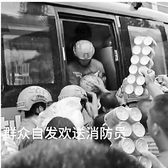 6月23日,福建龙岩,龙岩森林消防支队在武平县下坝乡完成抢险救援任务后,准备撤离。当地居民自发上街欢送,争先恐后把水果、饮料往车上搬。不忍大家失望,消防员象征性收下一点后赶紧发动车子,哪知还有人掀开车篷布顺着缝隙硬往里塞。网友:辛苦了,你们值得!