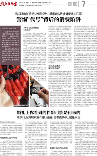“在直播中,商家使用‘代号’销售珍贵、濒危野生动物制品的行为,实际上就一种故弄玄虚的营销话术,主要目的是向消费者暗示其所售产品的稀缺性。在正常的商业活动中,没有一个商家会甘愿冒着被严厉的法律制裁,去特价销售野生动物制品。因此,提醒消费者在线上购物时,面对五花八门的产品和‘舌灿莲花’的主播推荐时,一定要保持冷静,避免冲动消费遭受消费欺诈。”该业内人士说道。