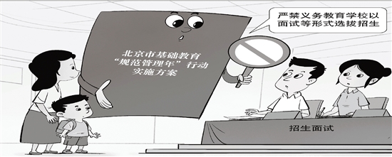 《北京市基础教育“规范管理年”行动实施方案》日前正式公布。该方案指出,严禁义务教育学校组织以选拔生源为目的的各类考试,或采用各类竞赛证书、社会培训成绩、考级证明等作为招生依据。严禁以面试、评测、接收简历等形式选拔学生。