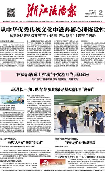 浙江法治报 一版 00001 “平安之树”如何枝繁叶茂 2024-07-02 浙江法治报2024-07-0200016;浙江法治报2024-07-0200018 2 2024年07月02日 星期二