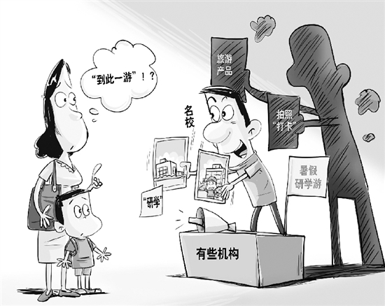一些研学游项目过度商业化,有的甚至“货不对板”,有欺诈消费者之嫌。有些机构将“研学”标签生硬地贴在旅游产品上,高价叫卖;有的机构抓住家长的“名校情结”,组织所谓研学团仅仅只是在知名高校门口拍照“打卡”,甚至采取违规手段进入校园,带来不良社会影响。