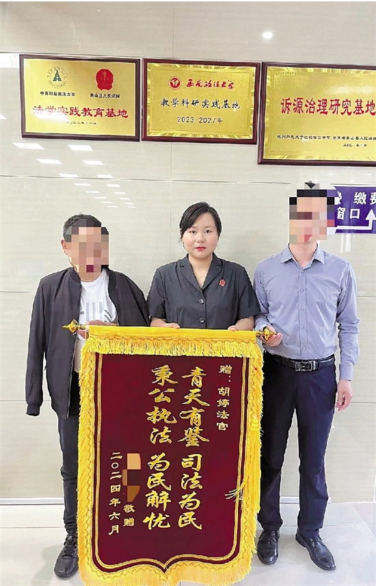 近日,老顾带着一面锦旗再次来到执行局,“胡法官,谢谢你!原谅我只能用一只手送上锦旗。”