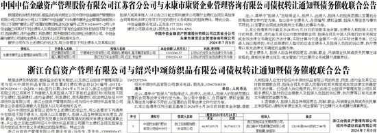 浙江台信资产管理有限公司与绍兴中颂纺织品有限公司债权转让通知暨债务催收联合公告