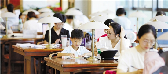 7月7日,杭城高温持续,市民在杭州图书馆看书、学习,感受不一样的清凉夏日。 魏志阳 摄