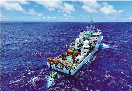 | 日前,我国深海矿产资源开发关键技术研究与装备研制取得重大突破,由上海交通大学自主研制的深海重载作业采矿车工程样机“开拓二号”成功完成海试。“开拓二号”连续完成5次着底采矿,取回深海多金属结壳与结核,实现深海重载作业采矿车海试水深首次突破4000米,最深达4102.8米,在国内首创深海复杂海底地形高机动行进、深海多矿类复合钻采等深海采矿领域多项技术。 图为6月22日,上海交通大学自主研制的深海重载作业采矿车工程样机“开拓二号”海试现场(无人机照片)。 新华社发 上海交通大学供图 |