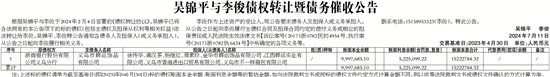 根据吴锦平与李俊于2024年2月4日签署的《债权转让协议》,吴锦平已将合法拥有的本公告项下的标的债权(包括主债权及担保从权利等相关权益)依法转让给李俊,吴锦平、李俊特公告通知各债务人及担保人(或义务承担人),从公告之日起向李俊履行相关义务。