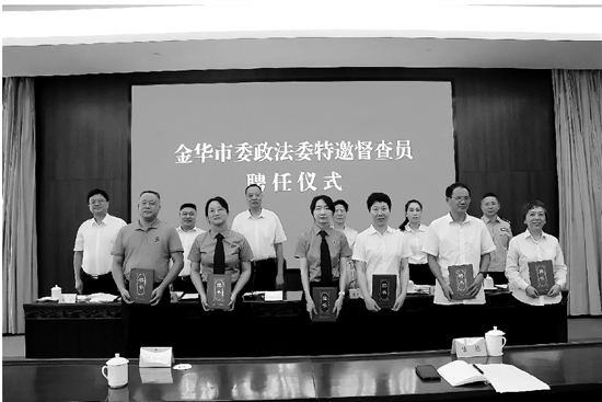 日前,金华市委政法委举行特邀督查员聘任仪式。选聘的6名特邀督查员来自政法部门、律师队伍、高校等多个领域。