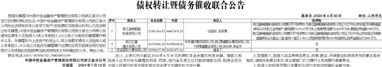 根据乐镇霆与中国中信金融资产管理股份有限公司浙江省分公司签订的《债权转让协议》,中国中信金融资产管理股份有限公司浙江省分公司所合法拥有的本公告项下资产(包括债权及担保从权利),已依法转让给乐镇霆,中国中信金融资产管理股份有限公司浙江省分公司特公告通知各债务人及担保人(或义务承担人),从公告之日起向乐镇霆履行相关义务。乐镇霆作为上述资产的受让人,现公告要求债务人及担保人或义务承担人,从公告之日起向乐镇霆履行主债权合同及担保合同约定的偿付义务或相应的担保责任或法院判决文书所确定的义务。特此公告。