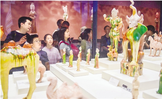 图为7月13日,游客在河南省洛阳市隋唐大运河文化博物馆参观游览。