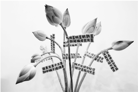 本报讯 “鸡蛋鸭蛋鹌鹑蛋,别被骗成穷光蛋”“茴香五香十三香,别中骗子迷魂香”……近日,诸暨市暨阳街道大桥社区联合城中派出所举办了一场“花”式反诈活动,这样一句句鲜活的反诈标语被贴在一朵朵荷花的花梗上,非常吸睛。