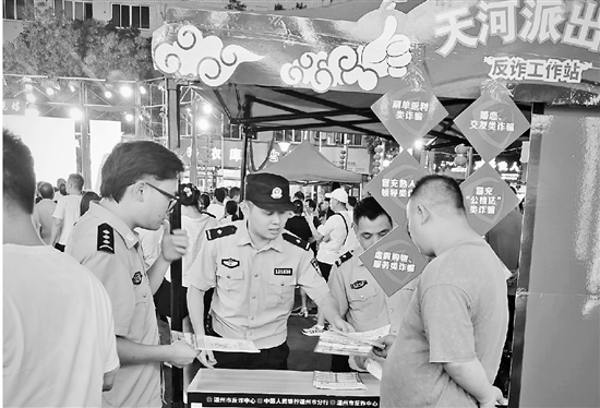 近日,温州龙湾公安天河派出所在庄泉村商业步行街人流聚集点位设立了“天河派出所反诈工作站”,通过分发反诈宣传单和小礼品、口头宣讲等形式,对逛夜市的群众开展防诈宣传。