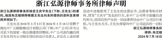 浙江弘源律师事务所接受王庆宇先生(下称:王先生)的委托,指派朱沈楼律师根据王先生向本所提供的资料发表律师声明如下: