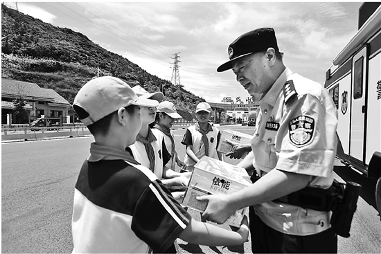 近日,岱山县公安局鱼山派出所迎来了10名来自岱山县实验学校的学生,他们用在暑期实践活动中赚得的人生“第一桶金”,买来矿泉水、饮料等防暑用品,为民警送上炎炎夏日里的一份清凉。随后,民警带领小学生们参观了警营、共富警务厅,叮嘱他们要好好学习、天天向上。