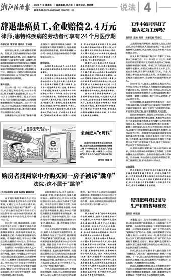 对职场人来说,生病请假在所难免。但是,员工因为请病假而被公司辞退的案例也屡见不鲜。近日,慈溪市法律援助中心就受理了这样一起案件,付某因患直肠癌在治疗期间被其公司解除劳动关系,在法律援助中心的帮助下,付某通过律师提起劳动仲裁,成功获赔2.4万元。律师指出,付某作为患特殊疾病的劳动者应享有24个月医疗期,该公司违法解雇或涉法律风险。