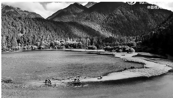 近日,西藏林芝,航拍镜头下的草湖犹如高原上的宝石,散发着幽蓝色的光芒,与绿草如茵相映成趣,似隐世秘境般宁静悠远。马儿在湖边自在喝水、休憩,远处的雪山抵挡了夏日的炎热,令人心驰神往。