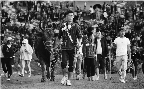 | 7月21日,四川省布拖县俄里坪镇火把场,主人高兴地牵着获胜公牛离场。 在四川省凉山彝族自治州布拖县俄里坪镇举行的传统节日“火把节”中,斗牛比赛作为传统项目,是火把节的第一大赛事,也是最吸引观众的角斗。 斗牛,彝语意为“牛顶”,与西班牙斗牛人与牛斗不同,是两匹公牛之间相斗。比赛时参赛的公牛被牵到一起进行顶力和耐力较量,直至一方体力不支夺路而逃。胜者高昂着头,牛的主人也高兴不已,败方则垂头丧气,现场时时引发观众欢呼。 新华社 江宏景 摄 |