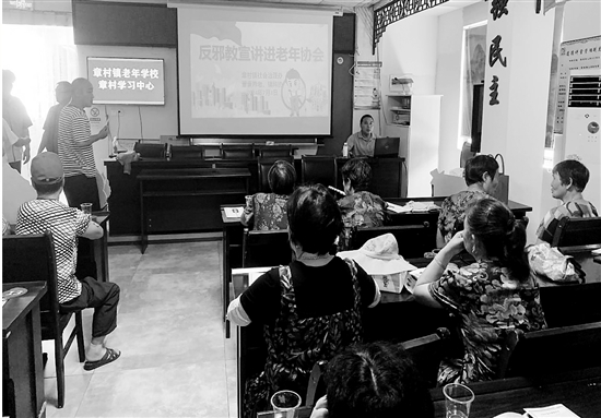 近日,湖州市反邪教协会联合安吉县章村镇,在章村老年协会开展反邪教宣讲进老年协会活动。现场,工作人员从“什么是邪教”“邪教的种类”“邪教的危害”等方面向老年人普及知识。活动发放宣传手册70余册,小礼品50余份。 通讯员 周晋鹏