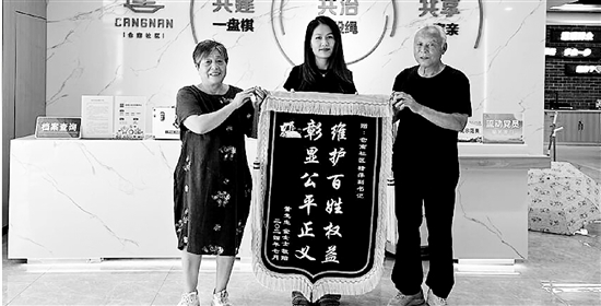 重展笑颜的老人,特地制作了锦旗送给社区,激动地表示:“感谢社区,感谢‘南事融议’,帮我解决了大难题。”