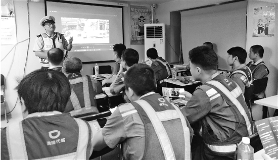 近日,台州市公安局交通警察局直属一大队交警走进辖区一代驾公司,为40余名代驾司机上了一堂交通安全教育课,引导他们养成良好行车习惯,进一步提升守法意识、安全意识和文明意识。