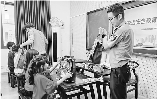 7月22日,天台县公安局坦头派出所走进辖区欢岙小学开展“圆梦微心愿 共筑助学梦”活动。民警为孩子们上安全教育课,并将精心准备好的书包、文具等学习用品作为助学礼物交到孩子们手中。 通讯员 鲍彩红 陈朵娴