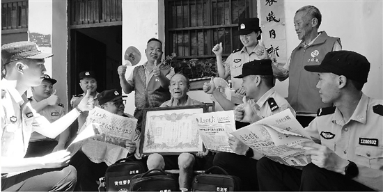 “八一”临近,近日,东阳市公安局千祥派出所组织党员民警、实习生,会同乡村党员、网格员、警务助理,走访抗美援朝老兵,向前辈致敬,报告夏季治安打击整治行动战果,学习党的二十届三中全会精神。 通讯员 徐步文