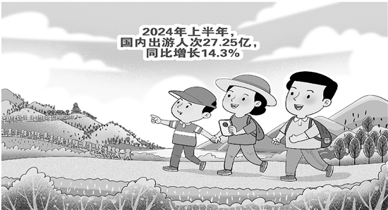 文化和旅游部近日发布2024年上半年国内旅游数据情况。根据国内旅游抽样调查统计结果,今年上半年,国内出游人次27.25亿,同比增长14.3%;国内游客出游总花费2.73万亿元,同比增长19.0%。