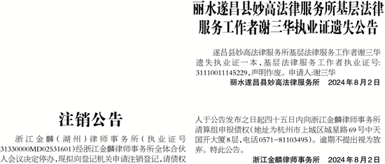 丽水遂昌县妙高法律服务所 2024年8月2日