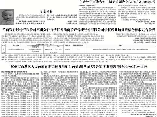浙江省浙商资产管理股份有限公司作为上述债权的受让方,现公告要求公告清单中所列借款人及其相应的担保人或其承继人,从公告之日起立即向浙江省浙商资产管理股份有限公司履行主债权合同及担保合同等相关法律文件项下约定的偿付义务或相应的担保责任。特此公告。