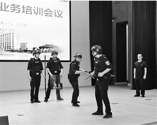 | “要与对方保持三到五米的安全距离”“手持盾牌,双肘夹紧……”台上,嵊州市公安局巡特警大队的特警队员正在为医院保安从业人员讲解演示动作要领。 当日,大队先后来到嵊州市人民医院、市中医院,开展安保人员技能培训“送教上门”活动。培训会采用“理论教学+实践操作”相结合的形式进行,特警队员着眼安保人员日常工作可能遇到的情况,围绕防爆器材使用、应对突发暴力事件等内容开展教学,并着重对盾牌、钢叉、长棍的操作要领及“最小作战单元”技战法进行了现场示范。 通讯员 黄洪波 |