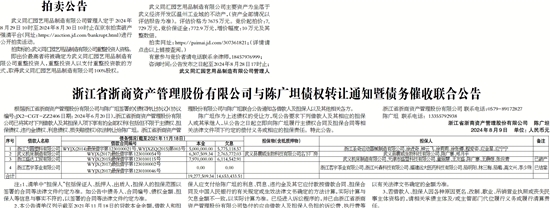 根据浙江省浙商资产管理股份有限公司与陈广坦签署的《债权转让协议》(协议编号:JX2-CGT-ZZ2406日期: 2024年6月20日),浙江省浙商资产管理股份有限公司已将其对下列借款人及其担保人项下享有的全部权利(包括但不限于主债权、担保债权、违约金债权、利息债权、损失赔偿权)依法转让给陈广坦。浙江省浙商资产管理股份有限公司与陈广坦联合公告通知各借款人及担保人以及其他相关各方。