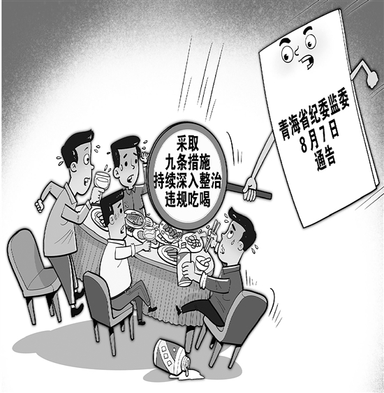 青海省纪委监委8月7日通告,采取九条措施深入整治违规吃喝问题,以零容忍态度、钉钉子精神持续深入整治违规吃喝。