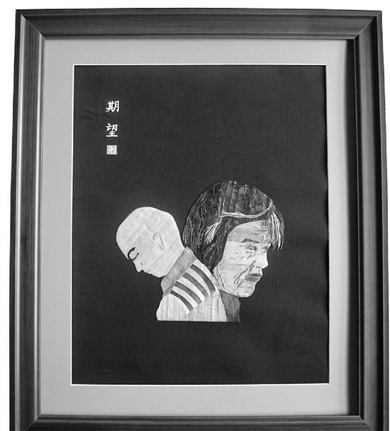 一幅幅作品挂上展示栏,小向的改造更有动力。他提起了自己最难忘怀的一幅作品,画面中,年迈的母亲和身穿囚服的儿子背对着,囚子垂头不语,母亲的目光深沉复杂,“当时我母亲过寿,我却在监狱里服刑,这画里,是我的悔恨,是对母亲的思念和对家人的亏欠。”小向说,他把这幅麦秆画叫作《期望》,期望自己努力改造,早日回家弥补家人。