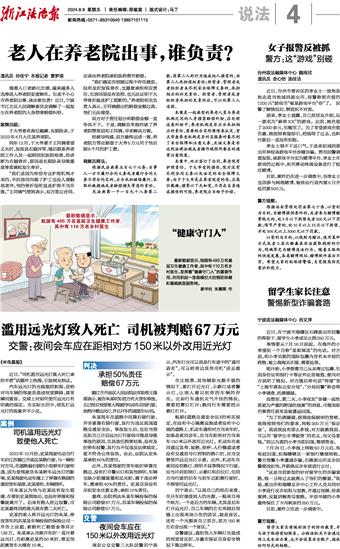滥用远光灯致人死亡 司机被判赔67万元