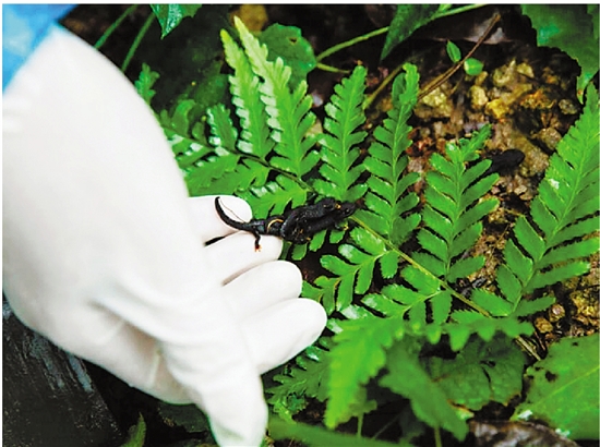 镇海棘螈野外种群数量极其稀少,被《国家重点保护野生动物名录》列为国家一级保护动物,也被誉为宁波“大熊猫”。
