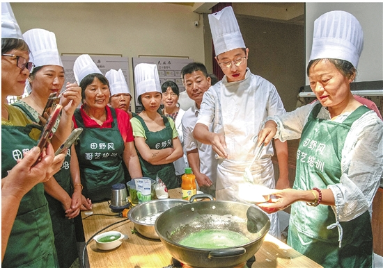 | 近日,在金华市金东区农业农村局举办的农家乐经营管理培训班上,来自金东区各乡镇(街道)的农家乐从业人员学习特色菜肴的食材搭配、制作手法、烹饪技巧等,提升厨艺水平。今年以来,金东区农业农村局在各个乡镇(街道)举办了多期电商直播、农创客、乡村CEO、农家乐等培训班和农民大讲堂,进一步提高“新农人”的综合素质和职业技能,促进乡村振兴、农民增收。 时宽兵 摄 |