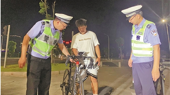 近日,临海市公安局交警大队头门港中队在白沙湾滨海公园交警执法站设立事故警示讲解台,向夜骑者宣传交通安全。下阶段,大队将采用“警车流动宣传+民警定点宣传”相结合模式,加大巡逻管控力度。 通讯员 项丹阳