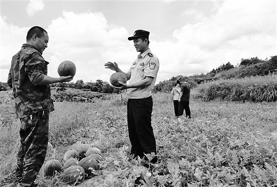 入夏以来,东阳市三单乡等山区出产的高山西瓜成了不少人的解暑首选。东阳市公安局佐村派出所在夏季治安打击整治行动中,将护佑高山西瓜产业列为重点工作,防偷盗、解纠纷、宣防诈,不断深化“共治共富生态警务”。