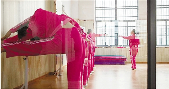 门口,头发花白的夫妻焦急地等待女儿出来;舞台上,木木(化名)正聚精会神地完成每一个舞步。