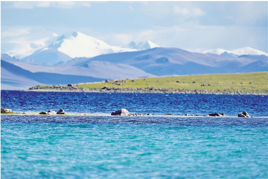 位于西藏那曲市申扎县的错鄂湖,藏语意为“蓝色的湖”,湖面及周边湿地鸟类众多,景色宜人。