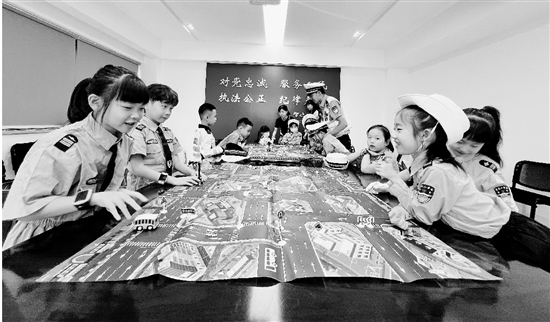 日前,温州市交警支队二大队三中队开展“守护平安 一盔一戴 伴您成长”学生专项交通宣传体验课。警员带领学生们走进警队,参观指挥室,了解交警接处警、指挥调度等流程;带领小朋友们到临近路口,实地开展交通安全劝导等。 本报记者 蓝莹