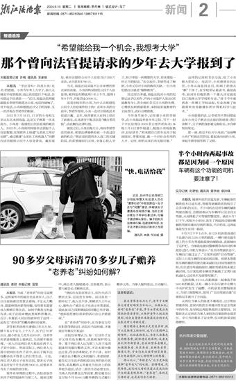 这样的记挂和书信交流,给了小亮极大的信心。电话中,小亮爸爸告诉法官,小亮从海盐回去后,和网上的朋友“断”干净了,在学校里认真读书,备战高考,他成年后做的第一个重大决定就是自己选择大学学校和专业,“孩子今年被西北一所理工学校录取,专业选择了他最喜欢也是最擅长的计算机科学与技术。”