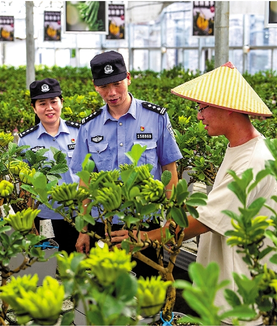 | 共富警务惠民生 近日,金华市公安局金东分局赤松派出所立足辖区生态环境基础,主动将公安工作融入绿色经济发展大局,推进“夏季行动”,深耕生态警务,全方位、多维度护航当地佛手产业经济发展,有力助推共富警务再上新台阶。图为生态警长严科带队在锦林佛手园开展法治宣传。 通讯员 杨梅清 |