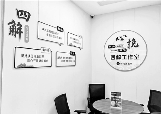 今年7月,新湾派出所联动“新湾司法所、律所、义蓬法庭”,签订共建协议,成立“心挽”四解工作室,秉承“解释、解气、解决、解困”的工作目标,构建“三所一庭”四解化解机制,最大限度将矛盾纠纷解决在早、化解在小。